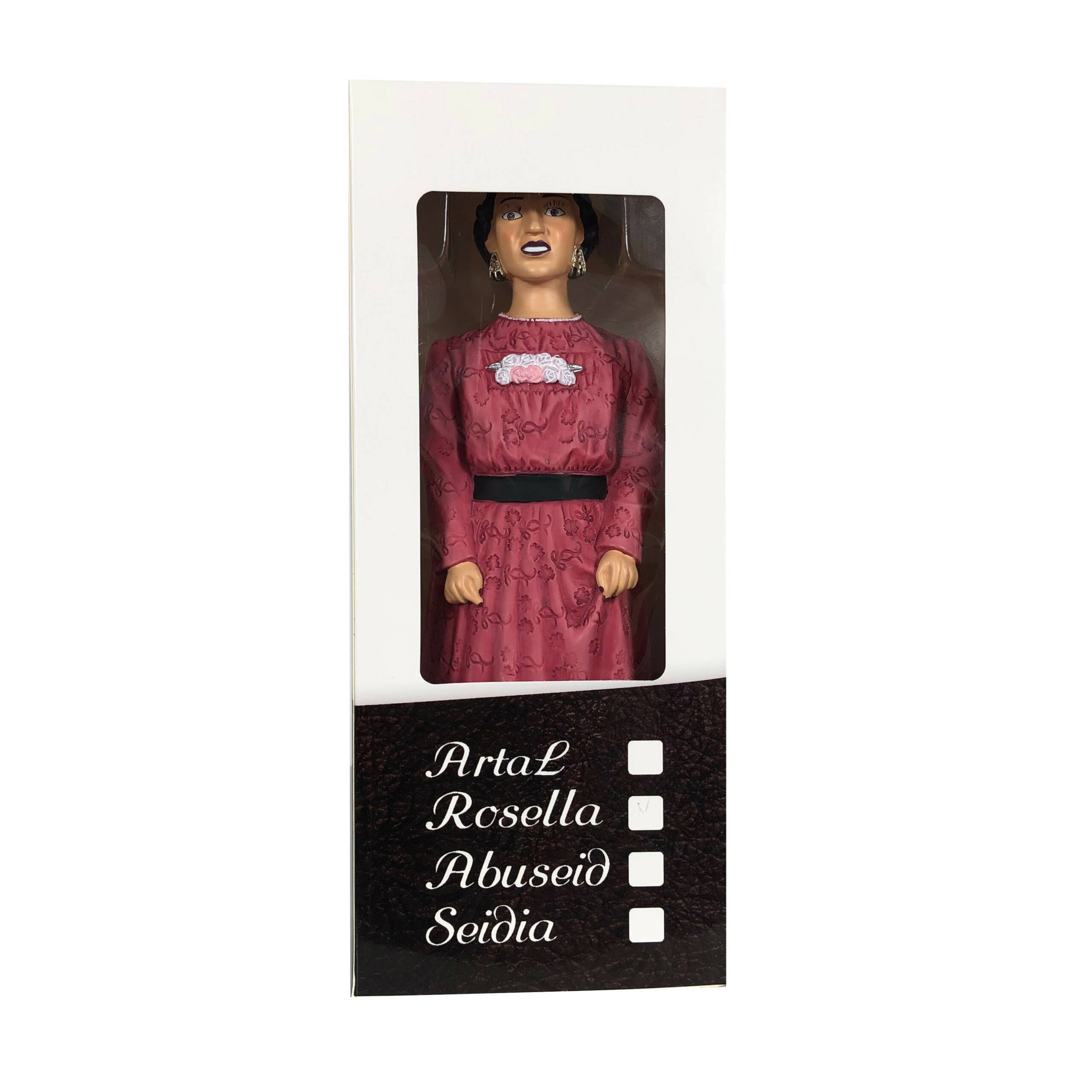 Réplica en miniatura de Rosella, la giganta de Morella (Castellón). Fabricada en el taller de Artesanía JM Sánchez en Terrer (Zaragoza), esta figura rinde homenaje a uno de los personajes más queridos de las fiestas del Sexenni de Morella, declaradas Patrimonio Cultural Inmaterial. Rosella encarna la tradición festiva morellana y esta réplica permite a los morellanos y visitantes conservar un recuerdo artesanal de estas celebraciones únicas.